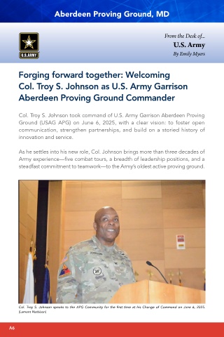 Col. Troy S. Johnson took command of U.S. Army Garrison Aberdeen Proving